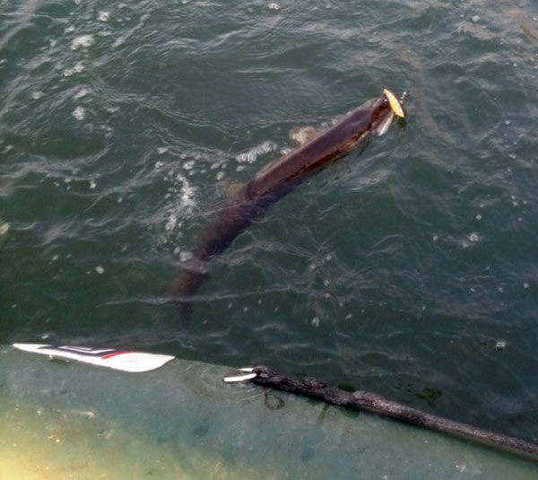 Les brochets sont en activité mais le spinner n’est pas le leurre qui lui convient. Je décide de changer de leurre, et jeremy en profite pour tenter avec son lipless. Grosse touche, et belle bataille.